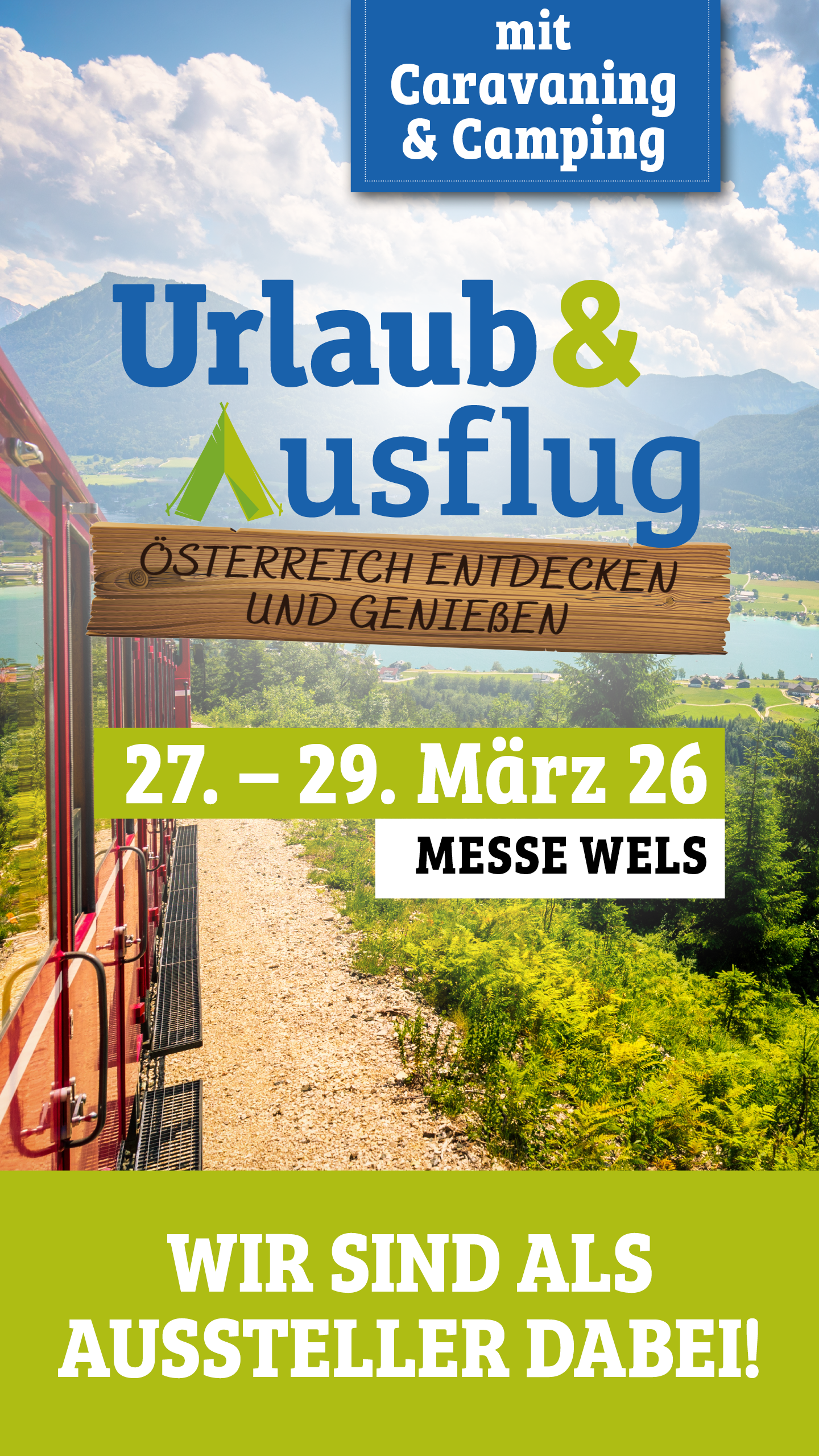 Nutzen Sie unsere neuen Banner und Logos für Website, Social Media, E-Mail-Signatur und Co., um im Vorfeld auf Ihre Messeteilnahme aufmerksam zu machen. Einfach Größe wählen, downloaden, einfügen und auf die www.urlaub-ausflug.at verlinken.